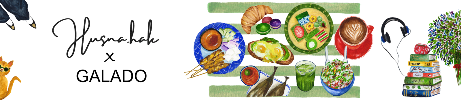 Husna Abdullah, creating as HusnaHak.art, from Brunei, enjoys painting in watercolor and acrylic. She captures florals, everyday life scenes, and the foods she treasures from her journeys between Brunei and Malaysia. The designs in this collection are primarily painted in watercolor, with occasional accents in acrylic pen to refine detail and definition.