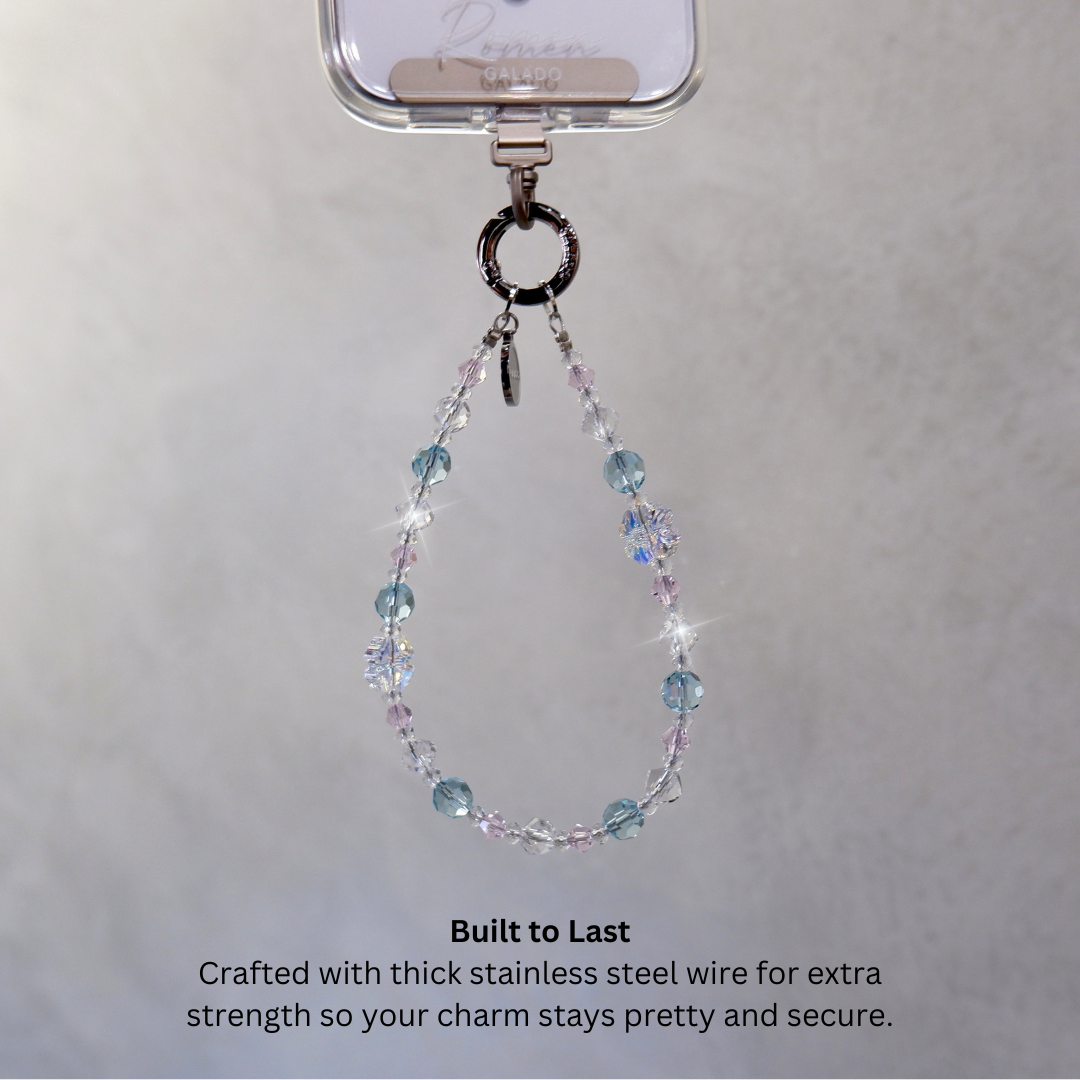 Each charm is handcrafted using premium crystals, beads, and pearls, assembled on reinforced stainless steel wire for maximum durability. Select designs feature 18K gold-plated accents.
