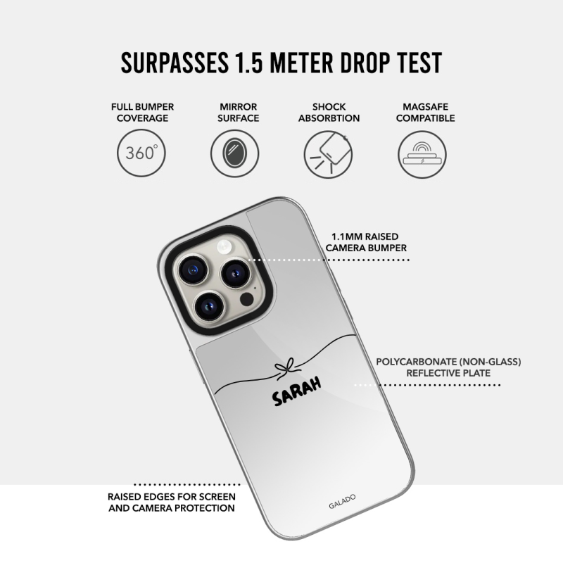This all new titanium-like silver electroplated case looks extremely classy on hand. The clear reflective, non-glass mirror on the back lets you check your look anytime, anywhere.