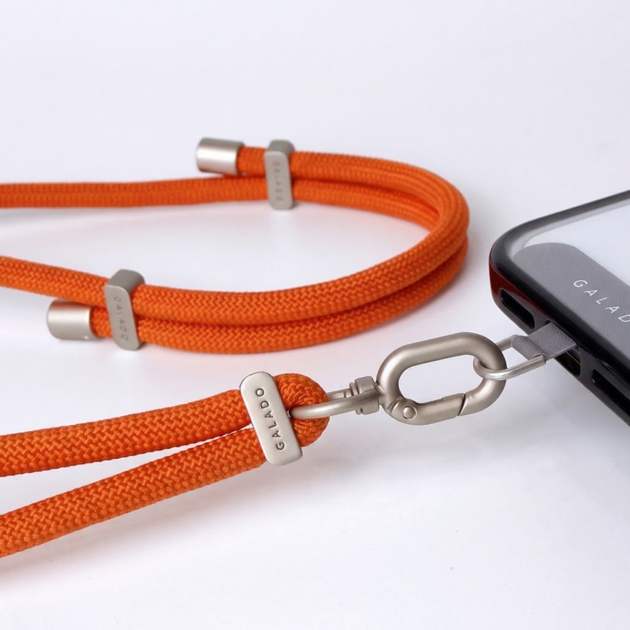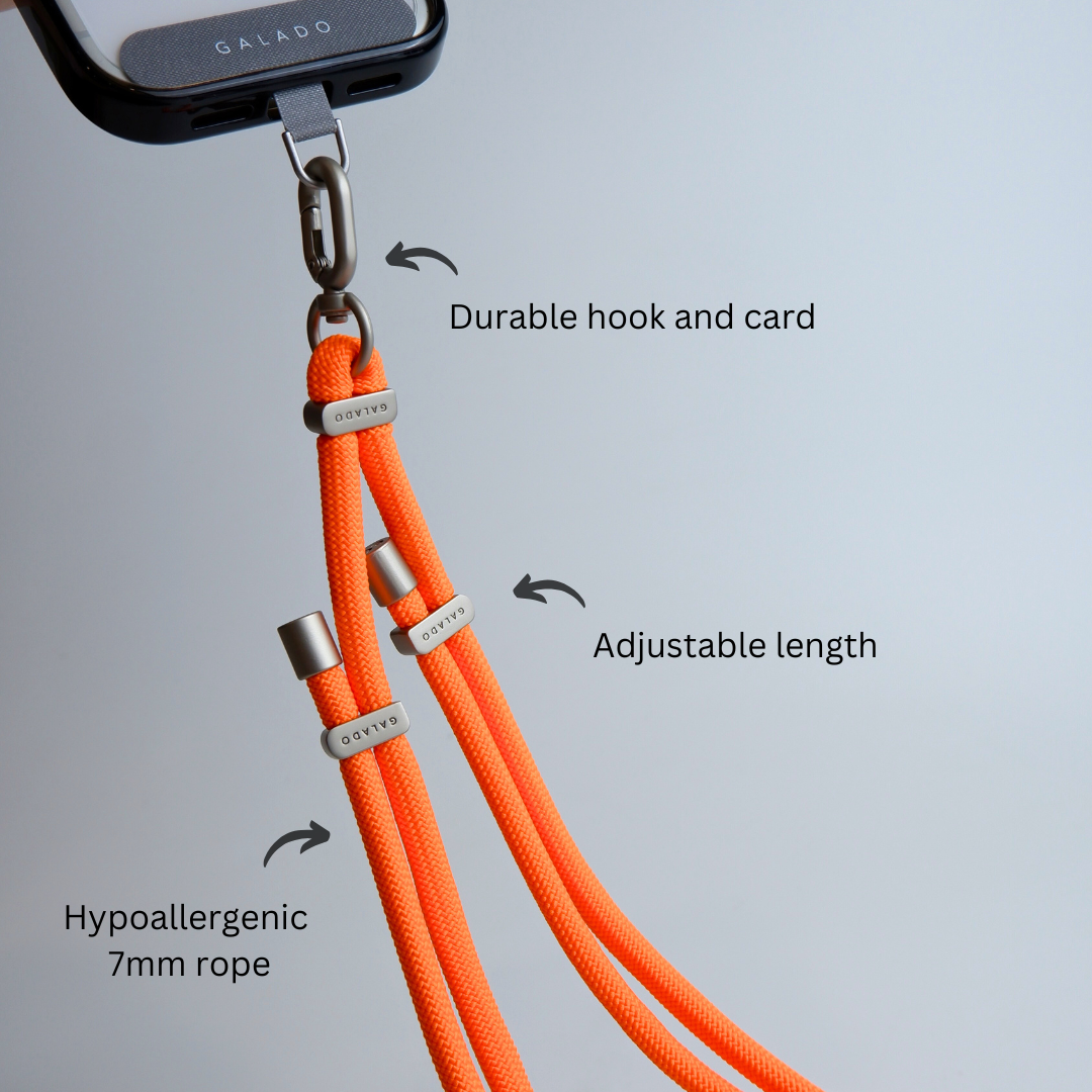 - Includes: 1 rope phone strap + 1 silver strap card + 1 matte silver carabiner.