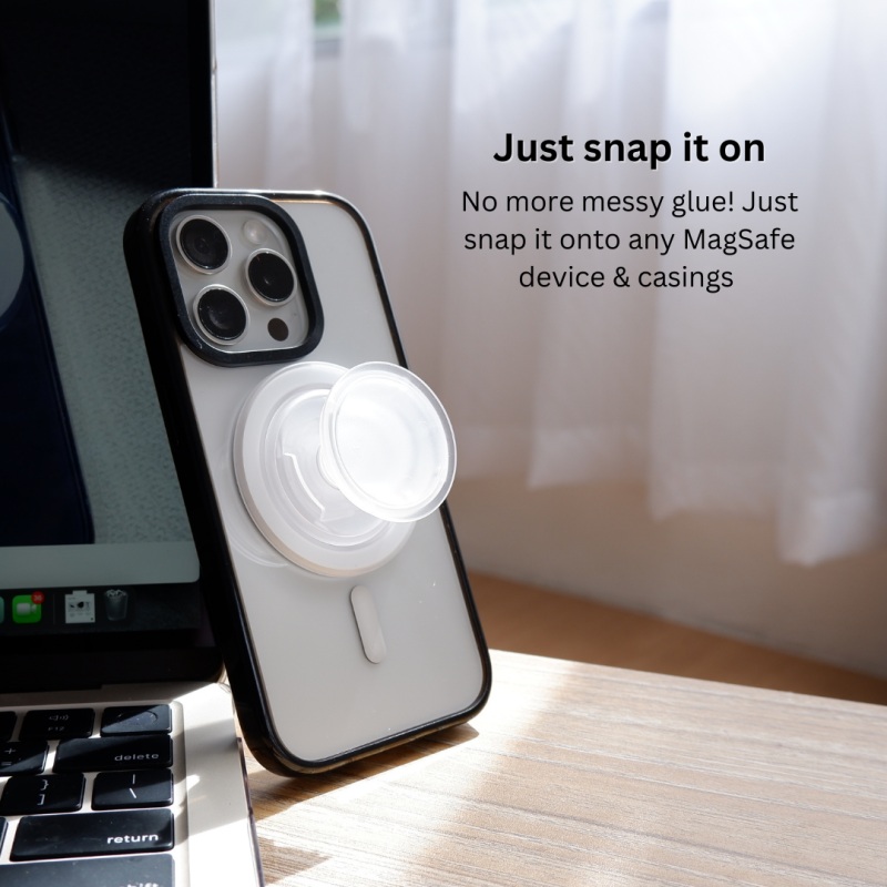 Install in a SNAP! This MATTE MagSafe ring stand snaps directly onto your MagSafe-compatible cases or devices. No more ugly tape residue from traditional phone rings.