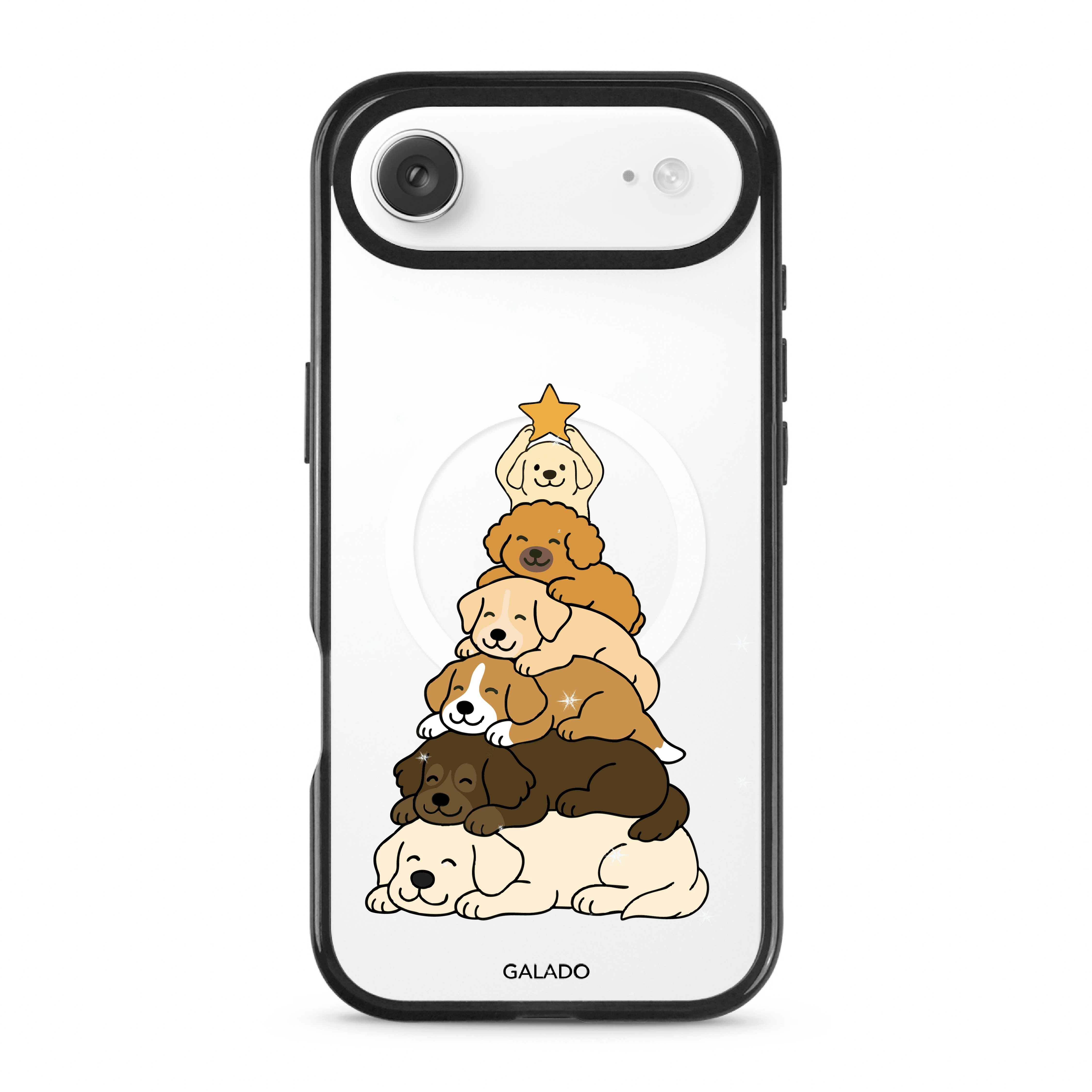 Merry Pupmas brings festive joy to your phone with a cute Christmas tree made entirely of chubby puppies.